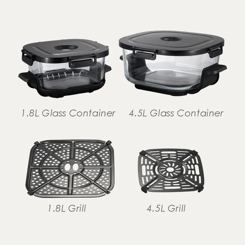 1500W Digital Control Crispy Air Fryer Double Glass Pot 1.8-4.5L Capacity Modern Square Double Basket German for Household Use